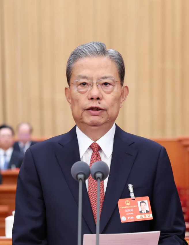 3月5日上午,第十四届全国人民代表大会第三次会议在北京人民大会堂开幕。赵乐际主持开幕会。新华社记者 黄敬文 摄