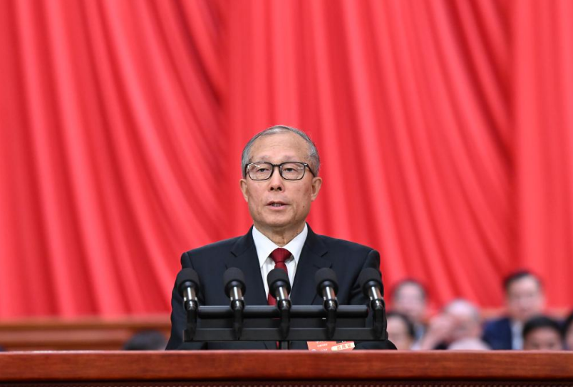 3月5日上午,第十四届全国人民代表大会第三次会议在北京人民大会堂开幕。受全国人大常委会委托,全国人大常委会副委员长李鸿忠作关于全国人民代表大会和地方各级人民代表大会代表法修正草案的说明。新华社记者 张领 摄