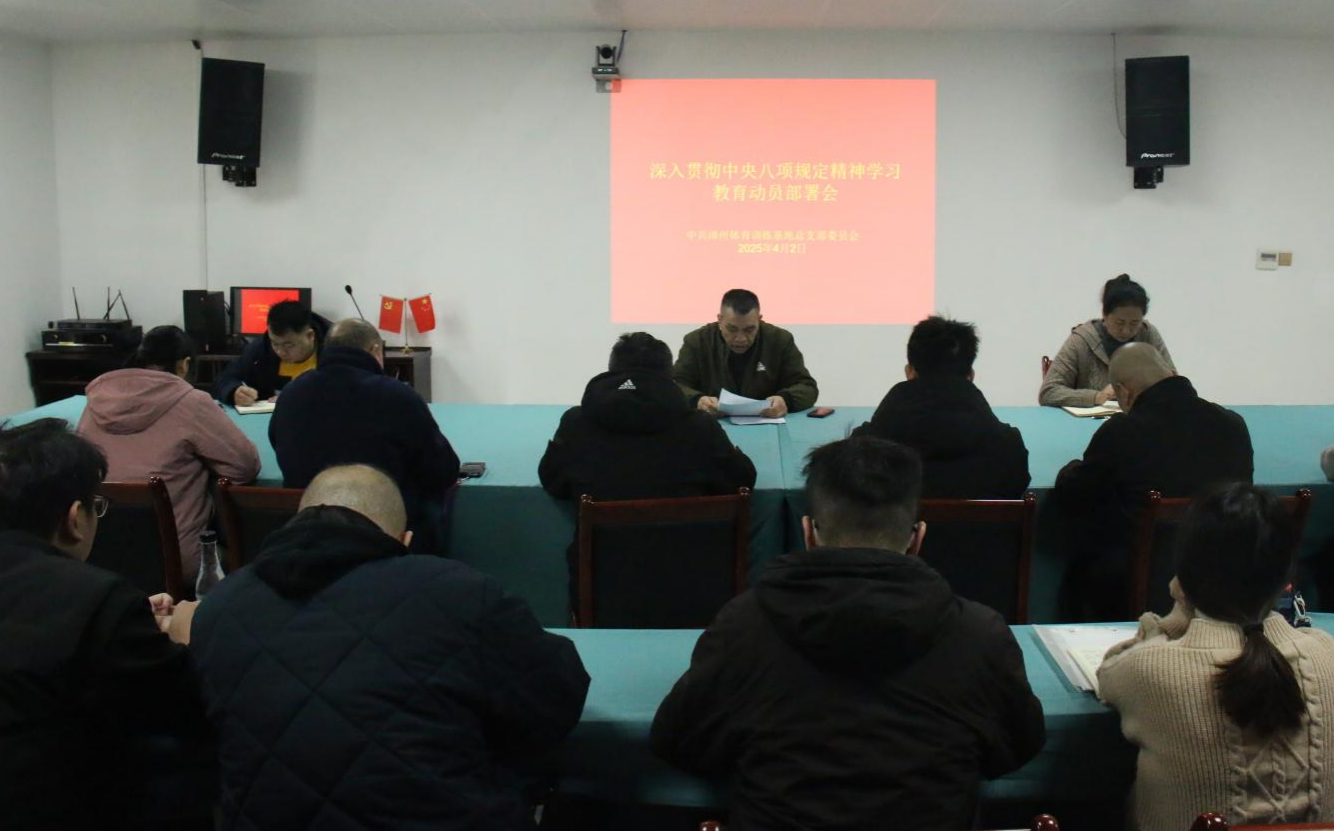 会上,省漳州基地党总支书记详细解读了中央八项规定的核心内容,传达学习了省体育局关于开展深入贯彻中央八项规定精神学习教育动员部署会精神以及《关于在局系统党员中开展深入贯彻中央八项规定精神学习教育的实施方案》。