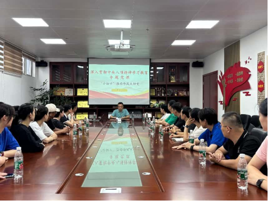 专题党课结束后,全体党员同志还集中学习了习近平总书记重要文章《锲而不舍落实中央八项规定精神,以优良党风引领社风民风》,并围绕文章内容开展了深入的交流研讨。大家结合自身工作实际,分享学习心得,进一步深化了对中央八项规定精神的理解和认识。