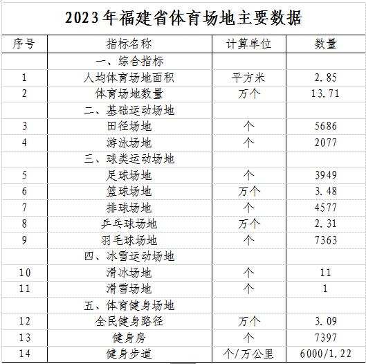 1.2023年福建省体育场地统计调查数据来源于“2023版体育场地统计调查系统”。