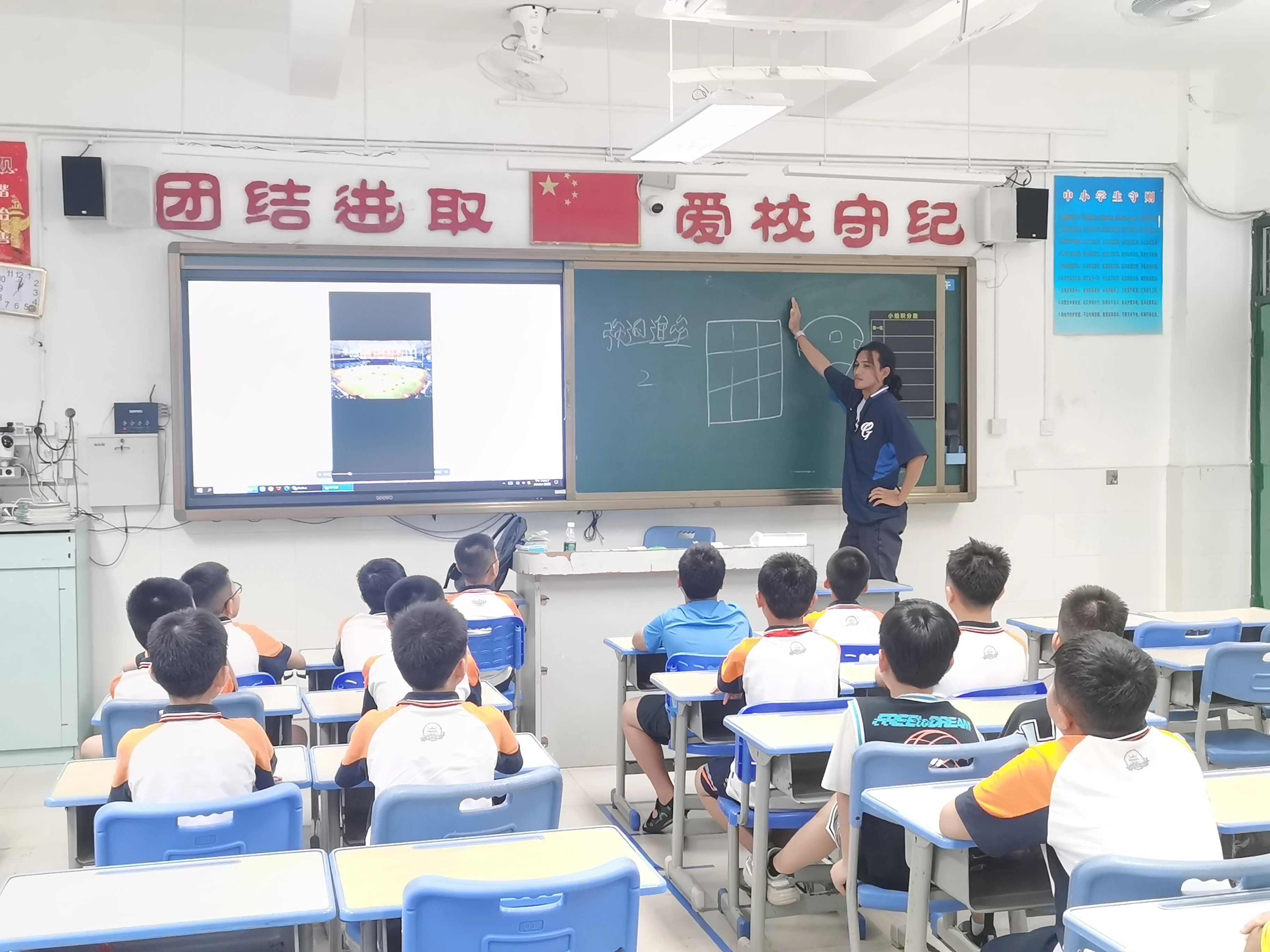 课上,林咏翔教练深入浅出地为学生讲解了棒球运动的基本知识、特点、规则、打法,并手把手进行教学,让学生们进一步掌握棒球技术、战术。