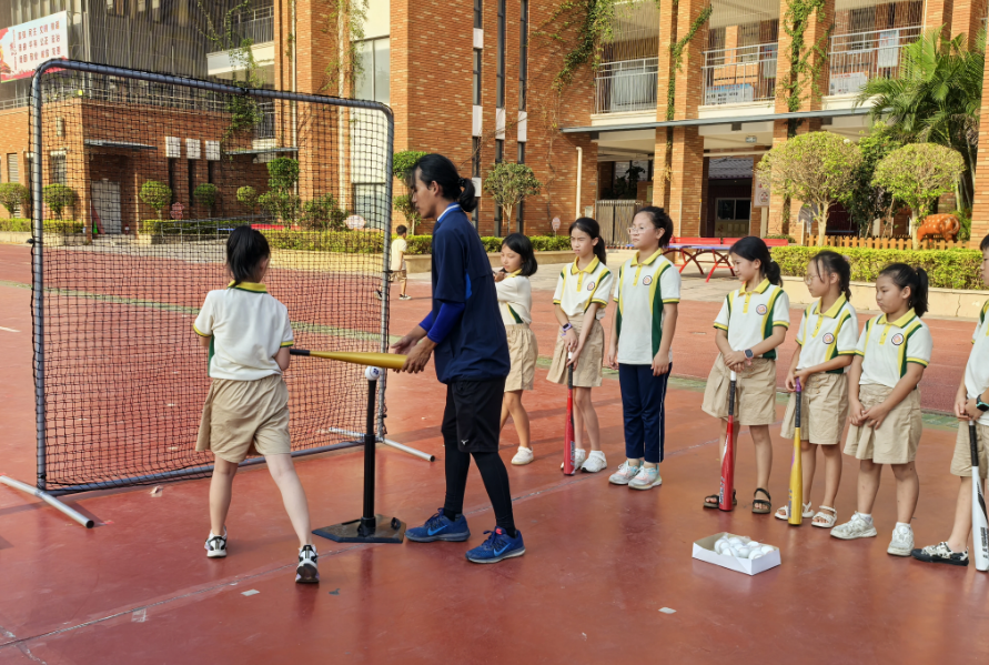 在教练的指导带领下,学生们挥动球棒、奔跑跳跃,从基本传球和接球起步,在实践中逐渐掌握击球和上垒的技巧,尽情享受棒球运动带来的乐趣,也让棒球的种子在心中生根发芽。