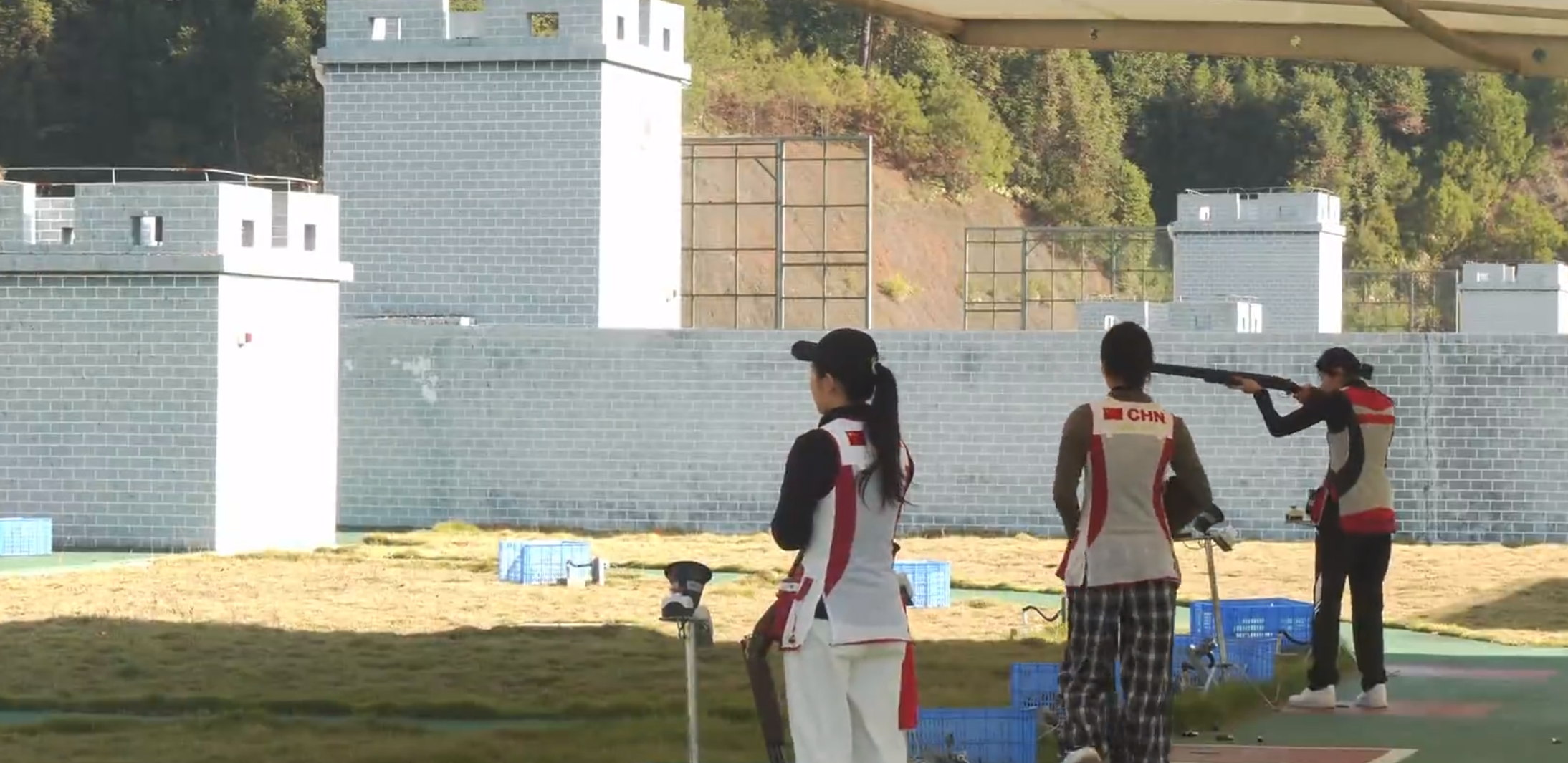 选手们身着专业的射击装
