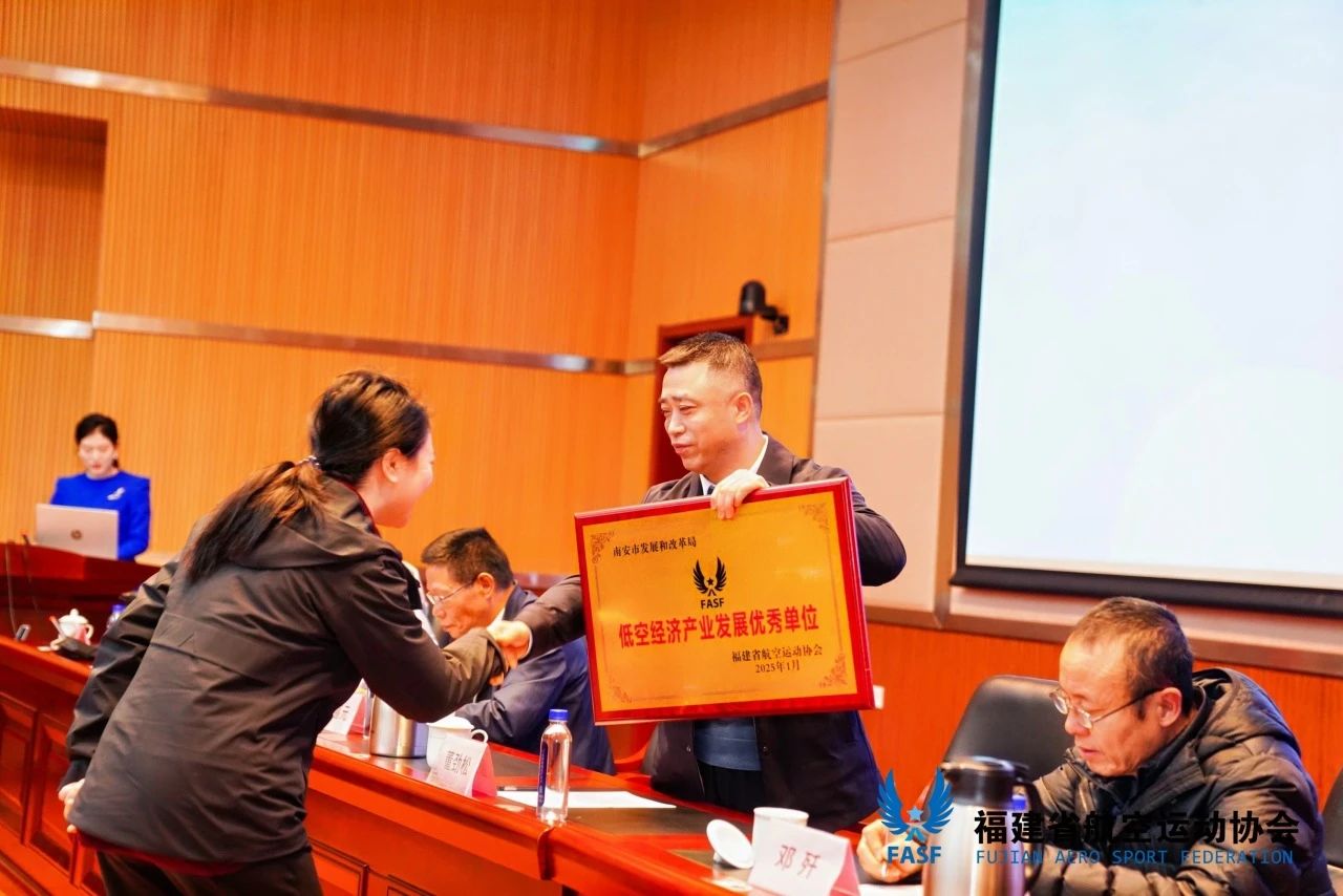 本次会议还举行了授牌仪式,向在低空经济领域表现杰出的企业、基地、单位、个人授予“低空经济产业发展优秀单位”“低空经济产业推广年度先进个人”“2024年度低空经济产业发展年度优秀企业”“低空经济产教融合实训基地”等荣誉称号。翱翔八闽,智创未来。本次低空经济产业发展年度总结会的成功举办,为福建省低空经济产业发展注入了全新活力与强劲动力,将进一步推动福建低空经济高质量发展。