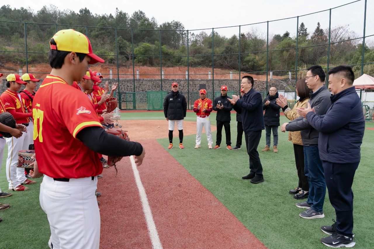 1月11日,省体育局副局长唐佑明一行到龙岩连城县广龙棒垒球文化交流基地,看望慰问在此备战2025年粤港澳全运会的福建省棒球队教练员、运动员,并检查后勤保障工作。