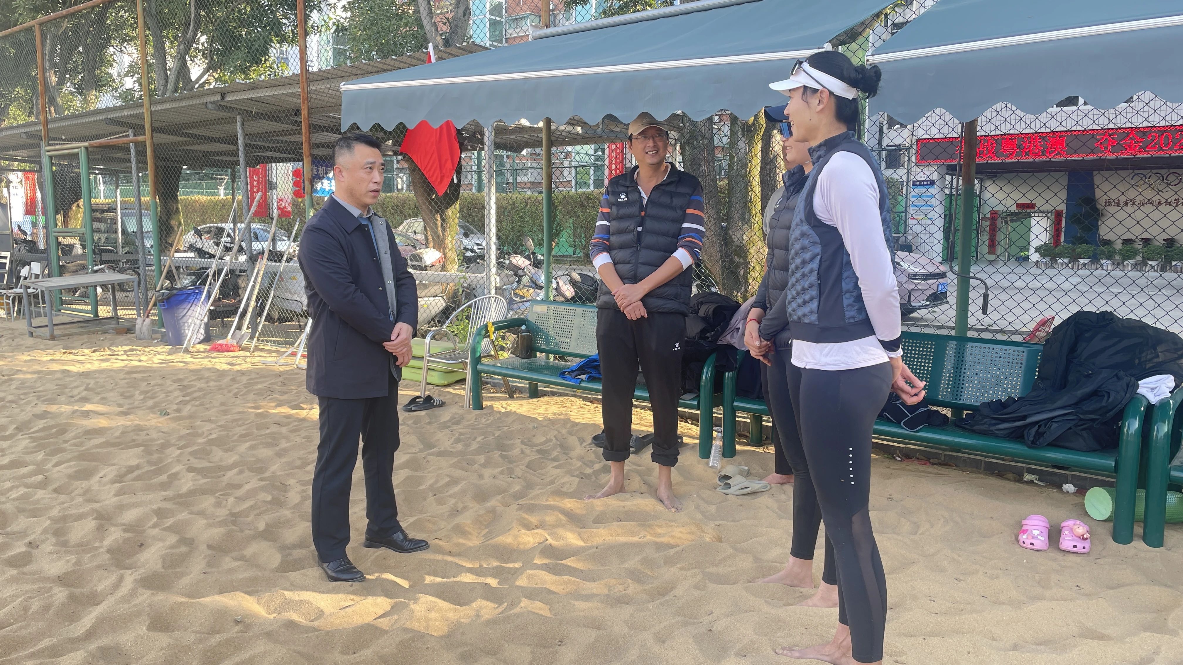 省体育局党组副书记、副局长董劲松看望慰问在榕沙滩排球运动员、教练员