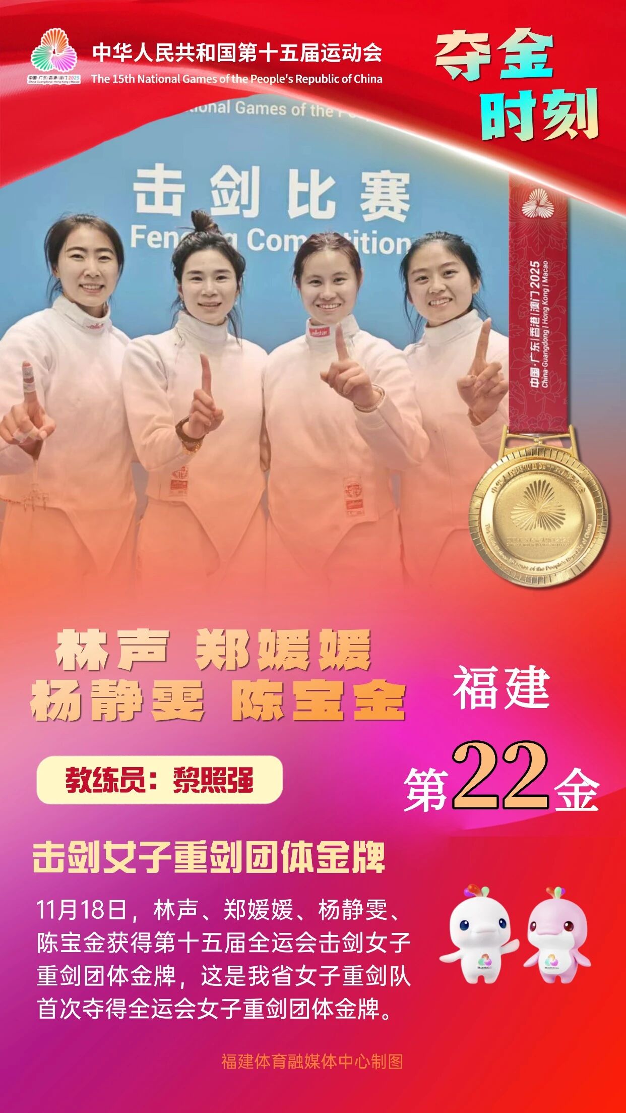 由泉州市输送的运动员陈宝金,2001年11月出生,2017年9月进入省击剑队,曾获2024年全国击剑锦标赛女重团体第三名,2025年全国击剑锦标赛暨全运会预赛第三站女重团体第三名。