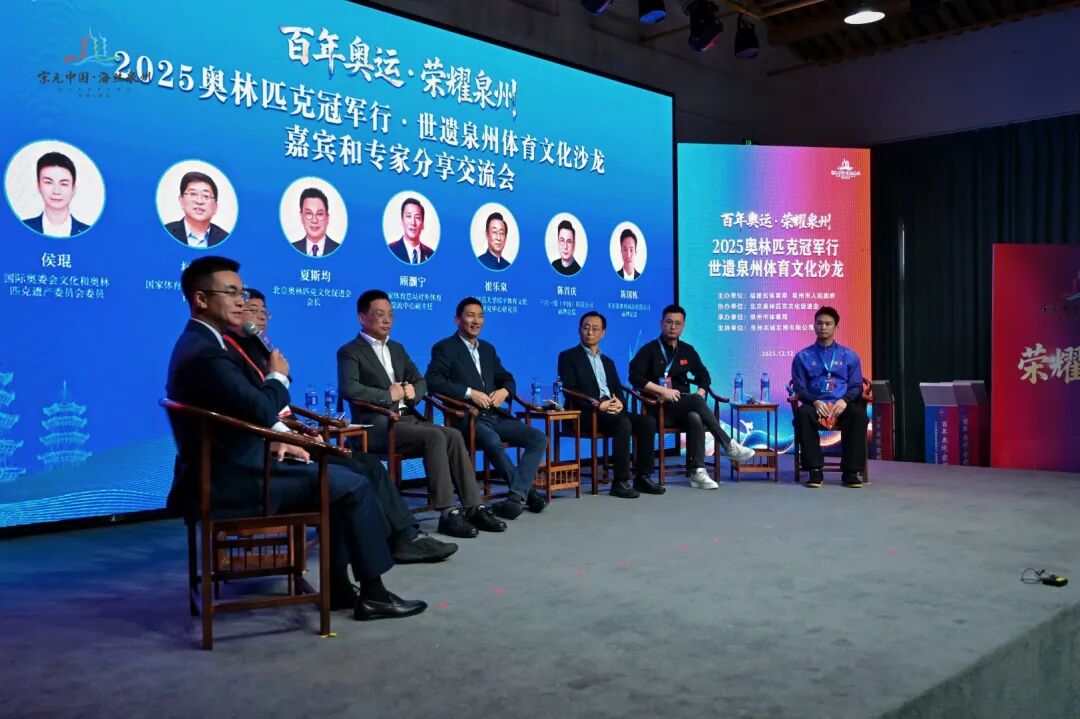 嘉宾分享交流会由国际奥委会文化和奥林匹克遗产委员会委员侯琨主持。国家体育总局对外体育交流中心副主任顾灏宁、北京奥林匹克文化促进会会长夏斯均、国家体育总局体育高端智库首席专家杨国庆、北京师范大学郎平体育文化与研究中心研究员崔乐泉,以及三六一度、卡尔美等泉州本土体育品牌负责人,围绕“体育事业与产业协同发展”“奥林匹克文化与城市品牌建设”“体育制造业转型升级”等议题展开深度对话。专家们一致认为,泉州拥有得天独厚的世遗资源、雄厚的体育产业基础和独特的闽南文化,应进一步打通体育与文化、旅游、教育、制造的边界,通过举办高水平赛事、引入奥林匹克文化项目、发展体育休闲旅游、推动智能科技赋能传统制造业等方式,将体育打造为泉州面向世界的又一闪亮名片。
