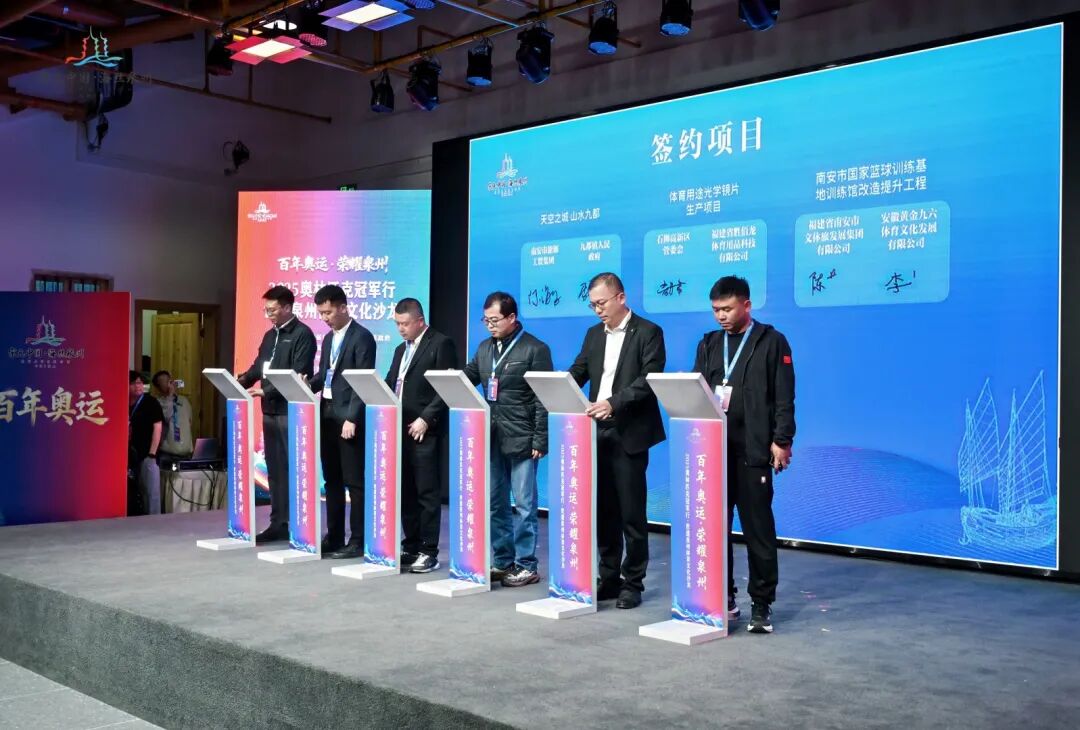签约仪式环节成为本次活动的重要亮点。12个重点体育项目分批完成签约,涵盖体育休闲度假、专业训练基地、产业升级改造、体育用品研发生产等多个领域,签约总金额超5亿元。其中,投资2亿元的“天空之城,山水九都”项目将打造现代乡土美学与体育休闲融合的度假胜地;石狮市体育用途光学镜片生产项目总投资 2亿元,将开展体育用途光学镜片研发生产;“洲克文化产业园·5G数字车间建设”项目将推动传统体育制造业转型升级,生产效率预计提升15%;“泉州市闽台区域棒垒球发展中心”项目则以体育为纽带,助力两岸融合发展示范区建设。这些项目的落地,将进一步完善泉州体育产业生态,为城市发展注入新活力。